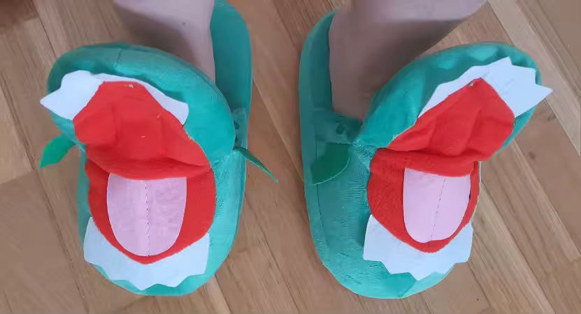 Answer 2: While they can be spot cleaned to maintain their vibrant colors, we recommend hand washing these slippers with mild soap and air drying to preserve their shape and the functionality of the moving mouth feature.
